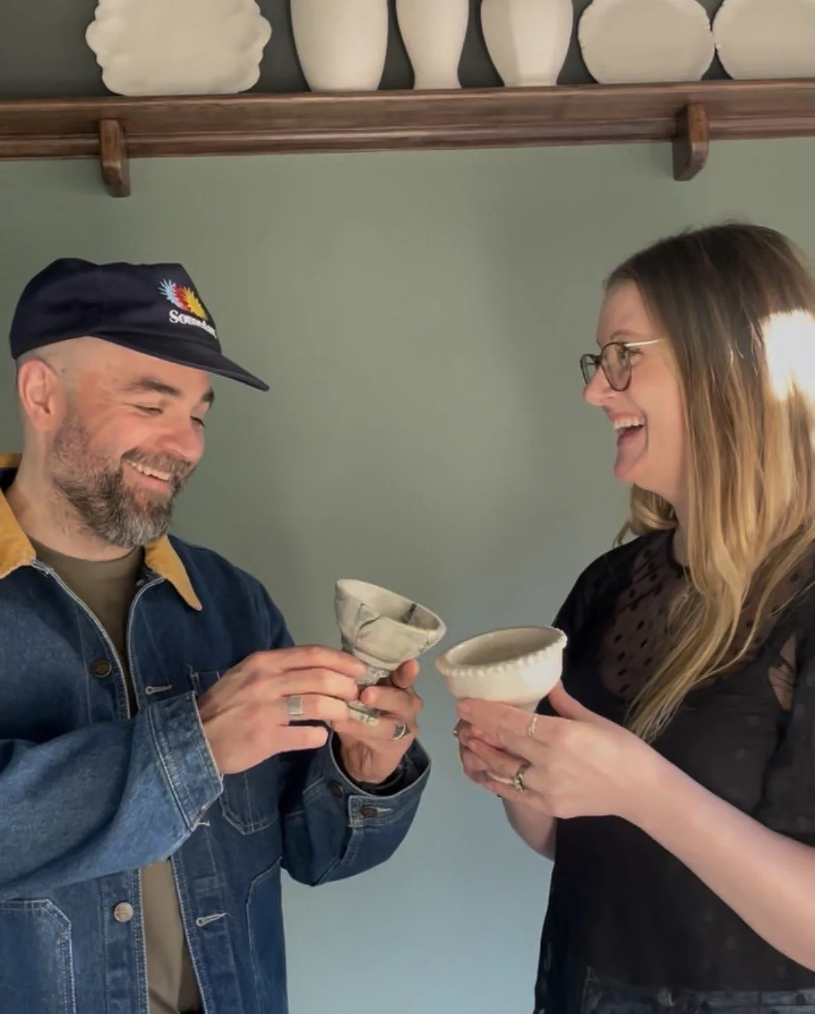 Clay + great vibes and a glass of sparkles for “inspired action”